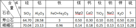 钾长石 水 叶蜡石 矽酸钾 二氧化硅