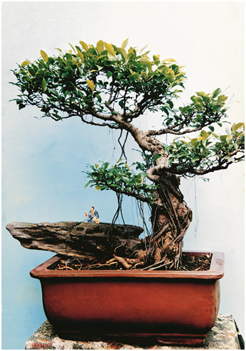 如图2 “阅尽人间春色”榕树立式盆栽(高46厘米)